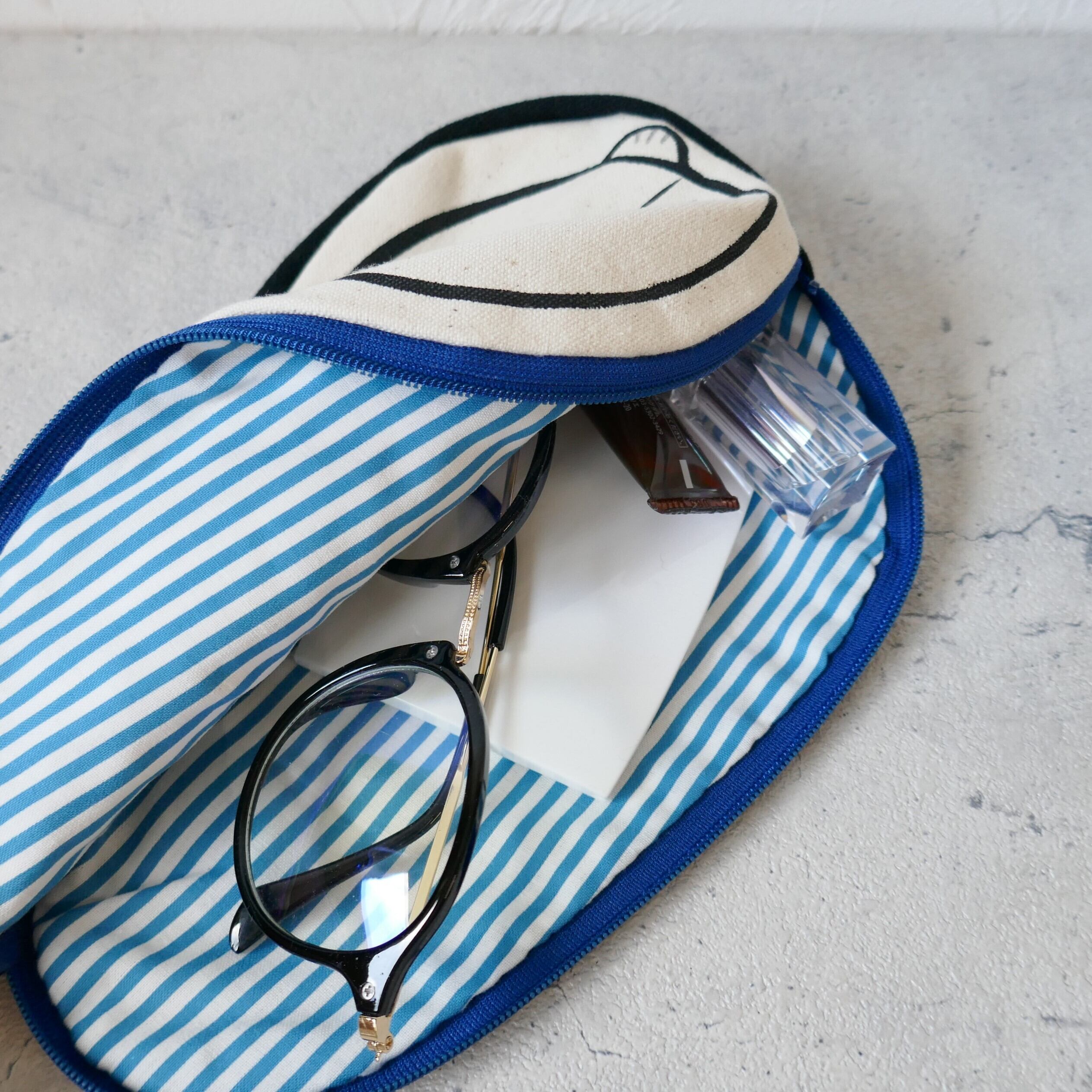 マチ付きポーチで、ファスナーも大きく開くので鞄の中の小物入れとして使えます。