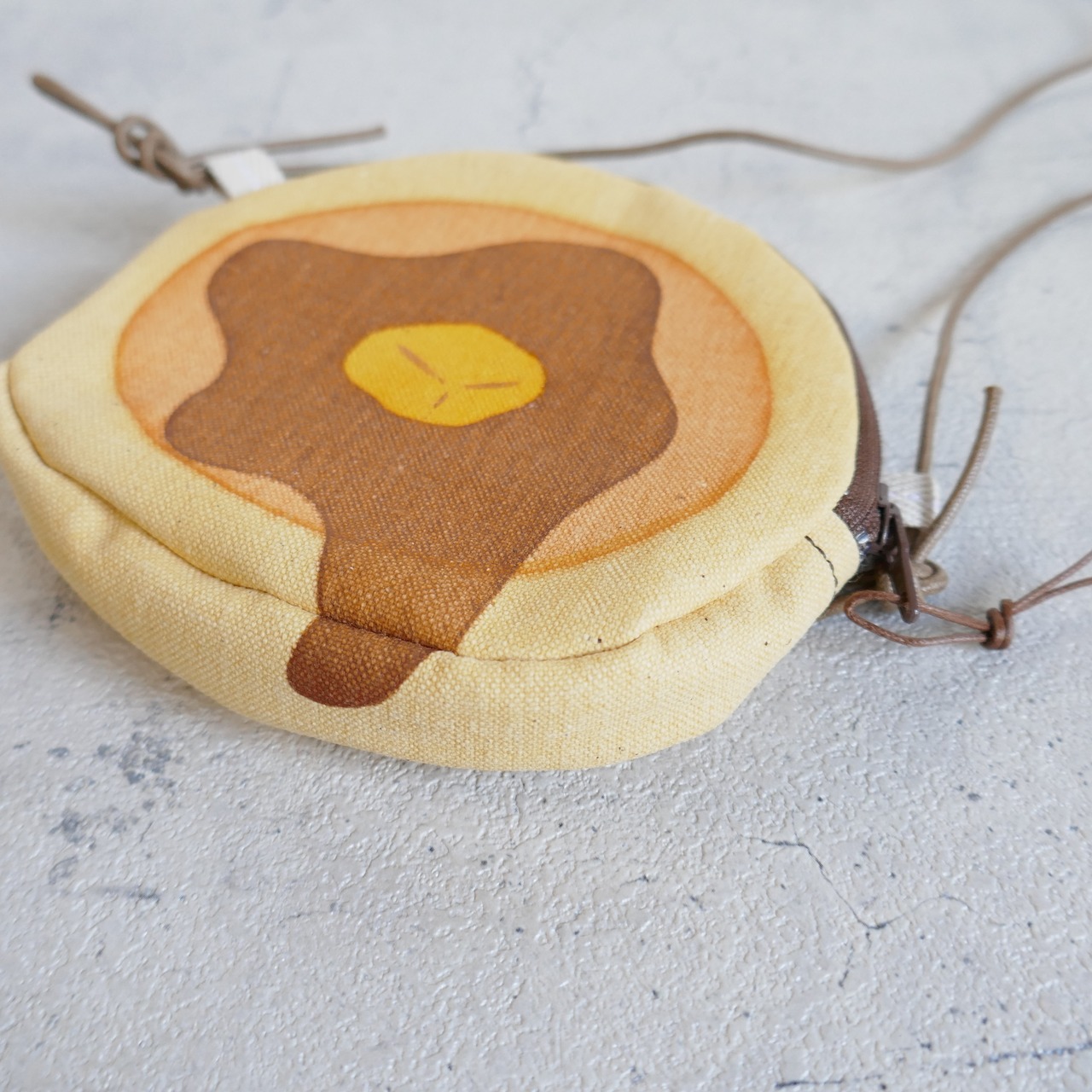 帆布をシルクスクリーンで染めた首かけタイプのパンケーキです。