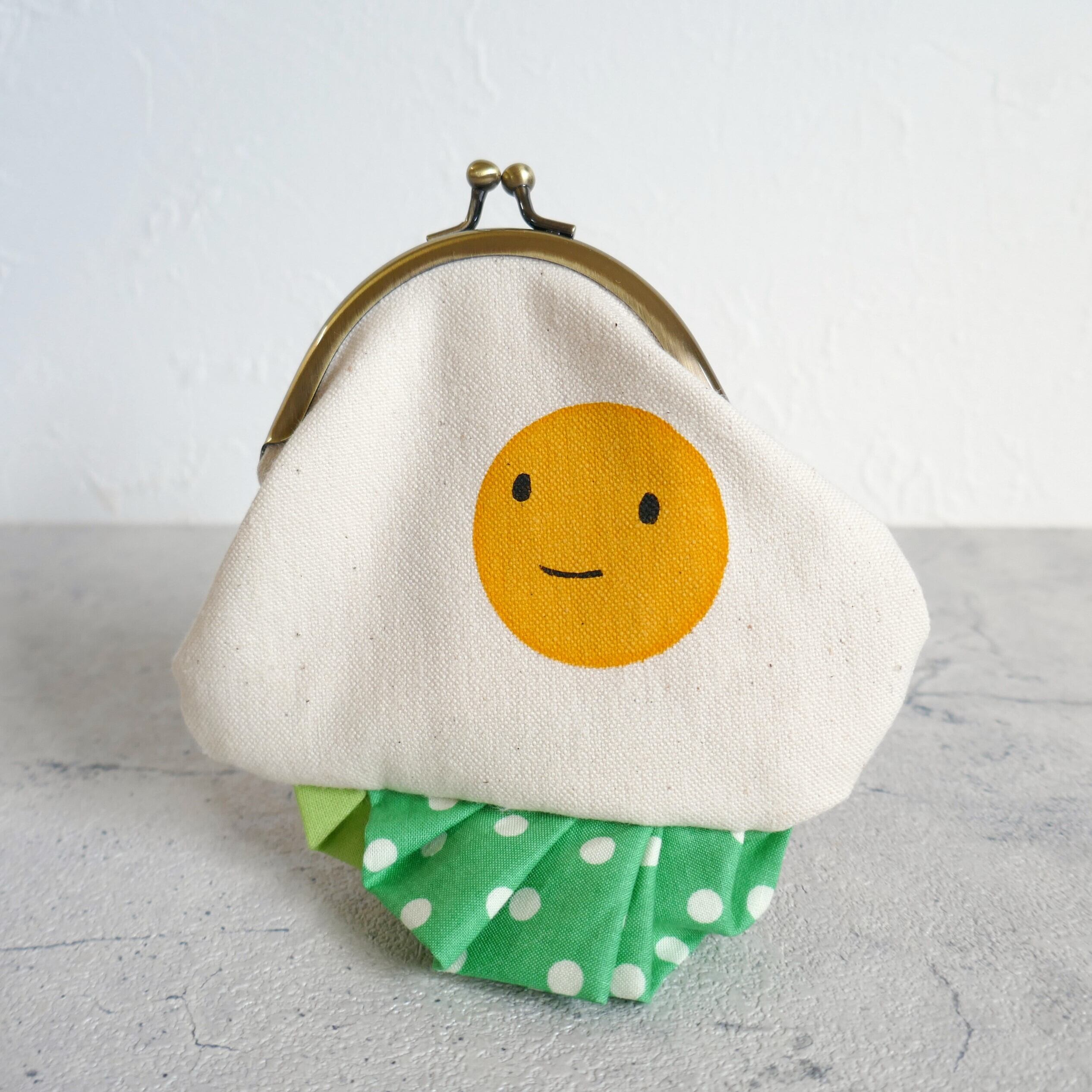 帆布をシルクスクリーンで染めた目玉焼き型のがまぐちです。