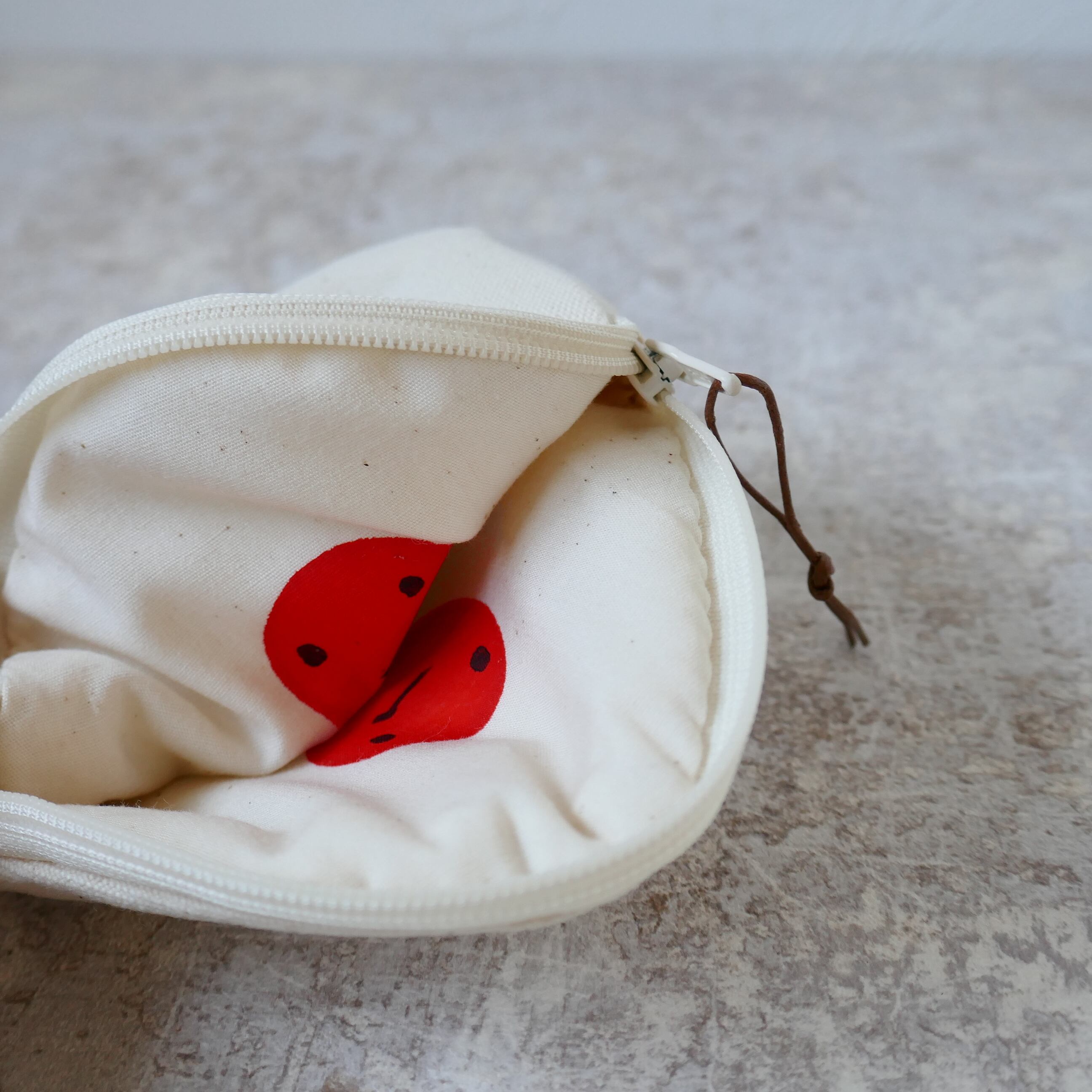 帆布をシルクスクリーンで染めたおにぎり型のポーチです。