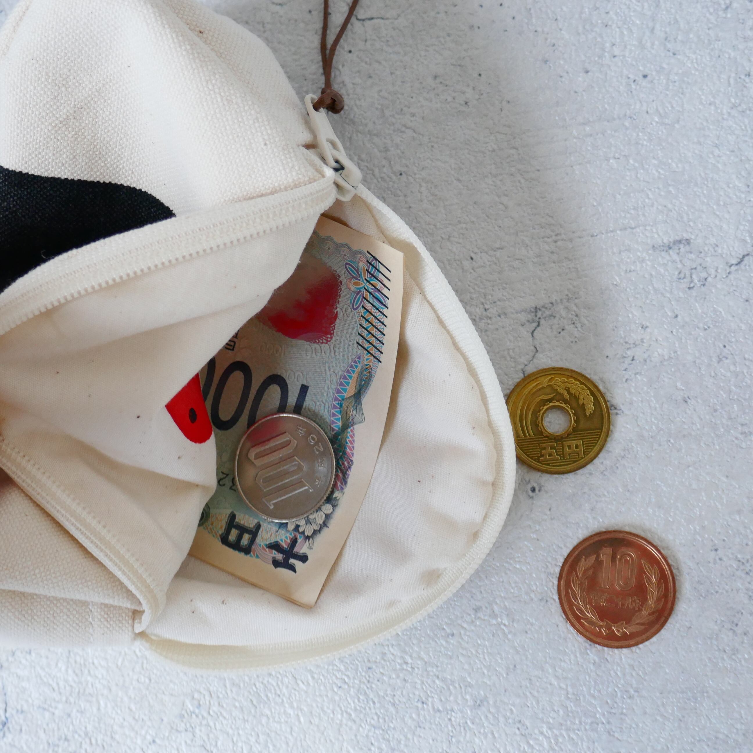 帆布をシルクスクリーンで染めたおにぎり型のポーチです。