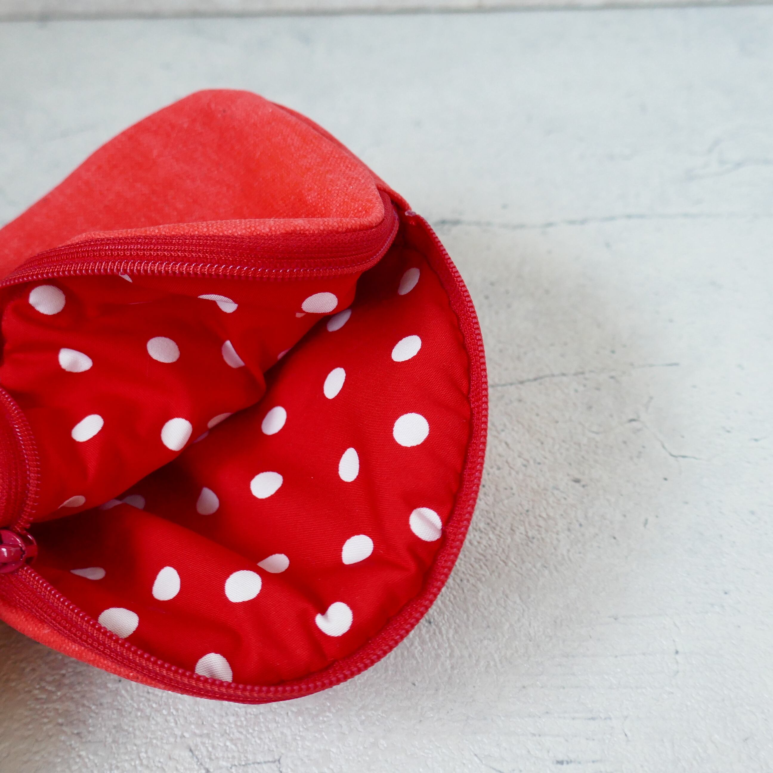裏地は赤色の水玉模様。