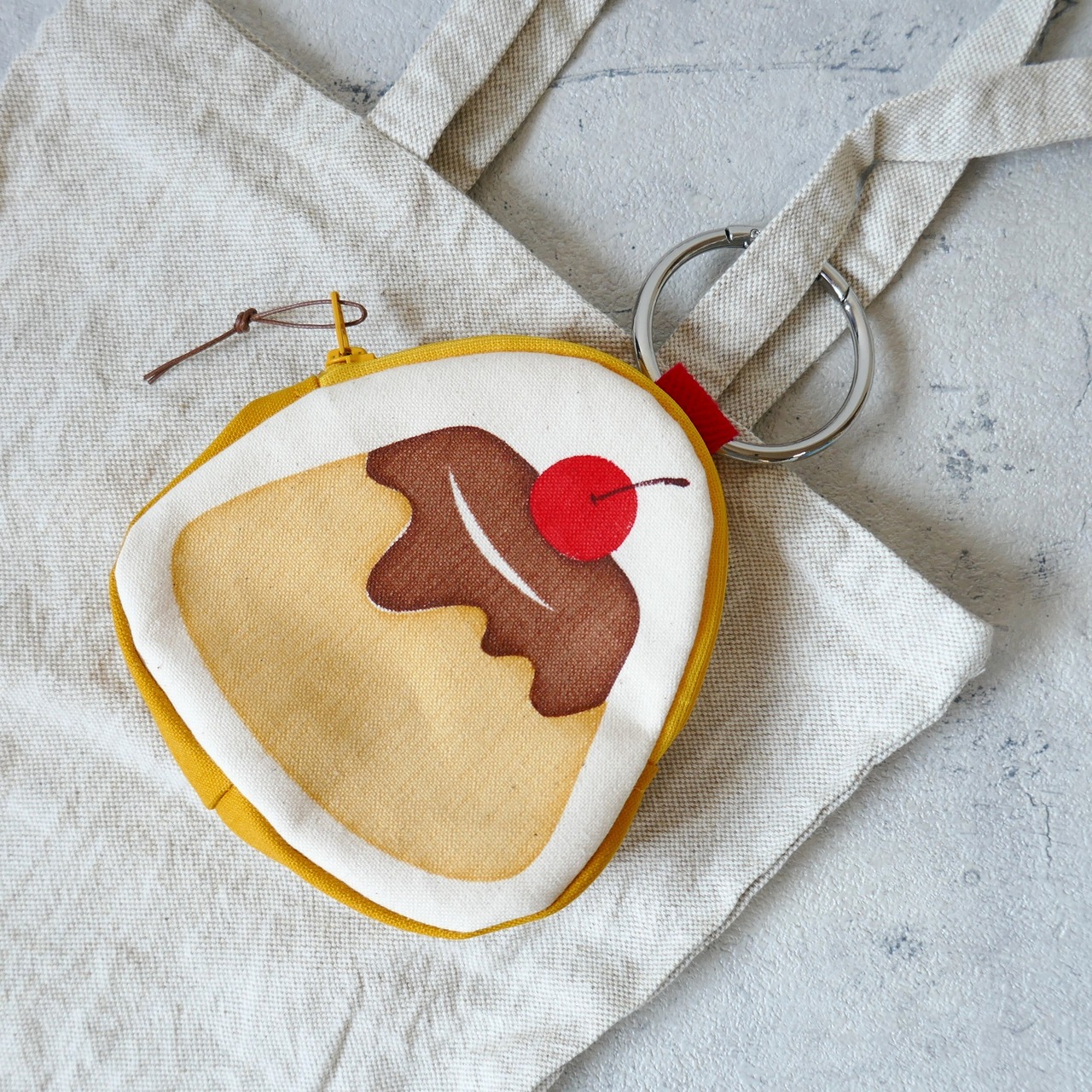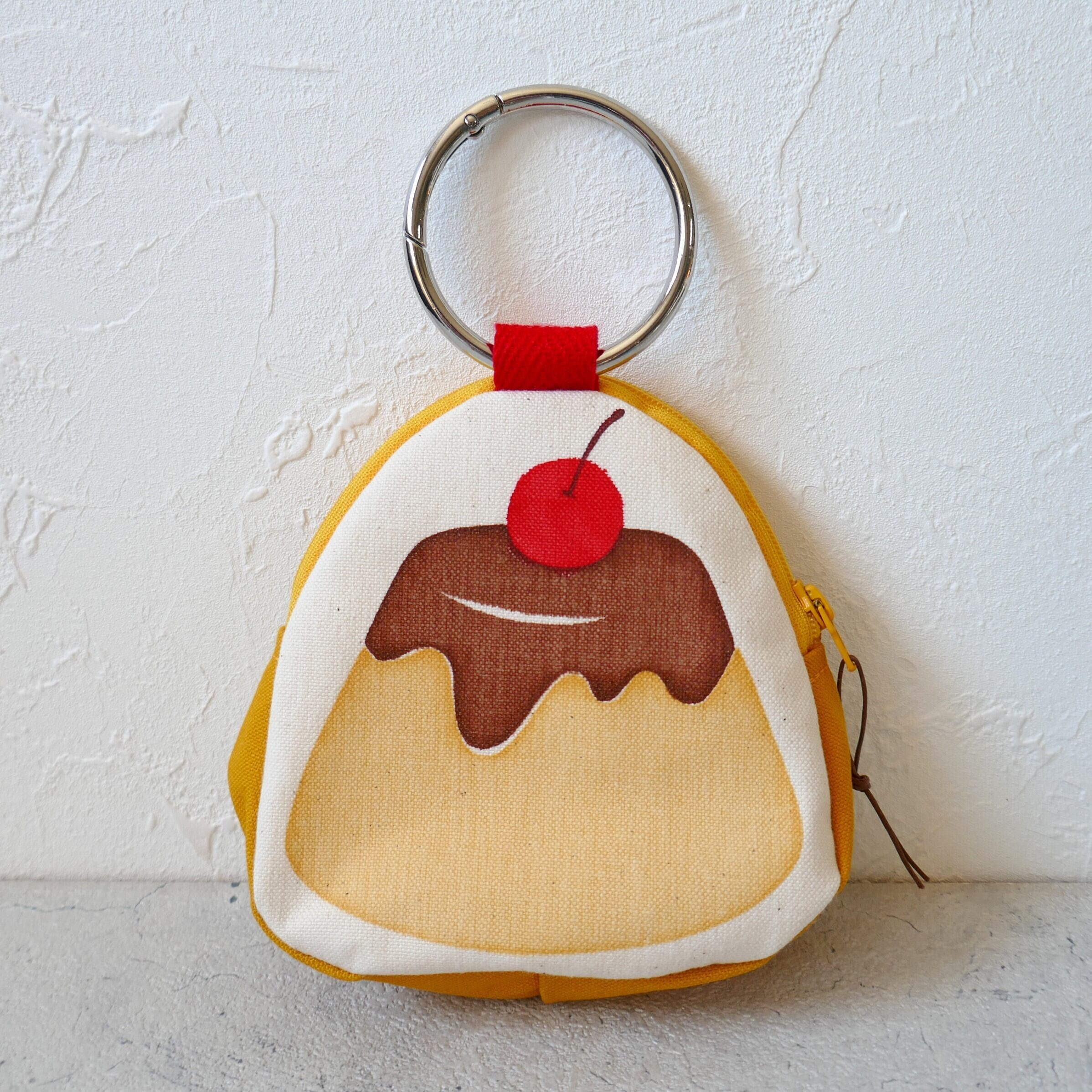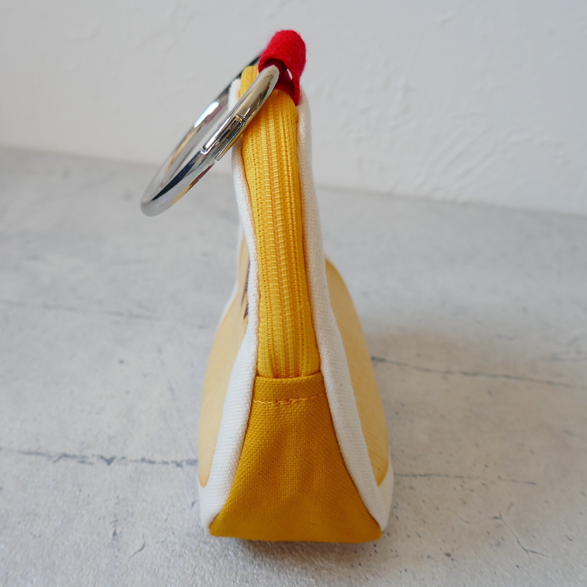 帆布をシルクスクリーンで染めたプリン柄のポーチです。
