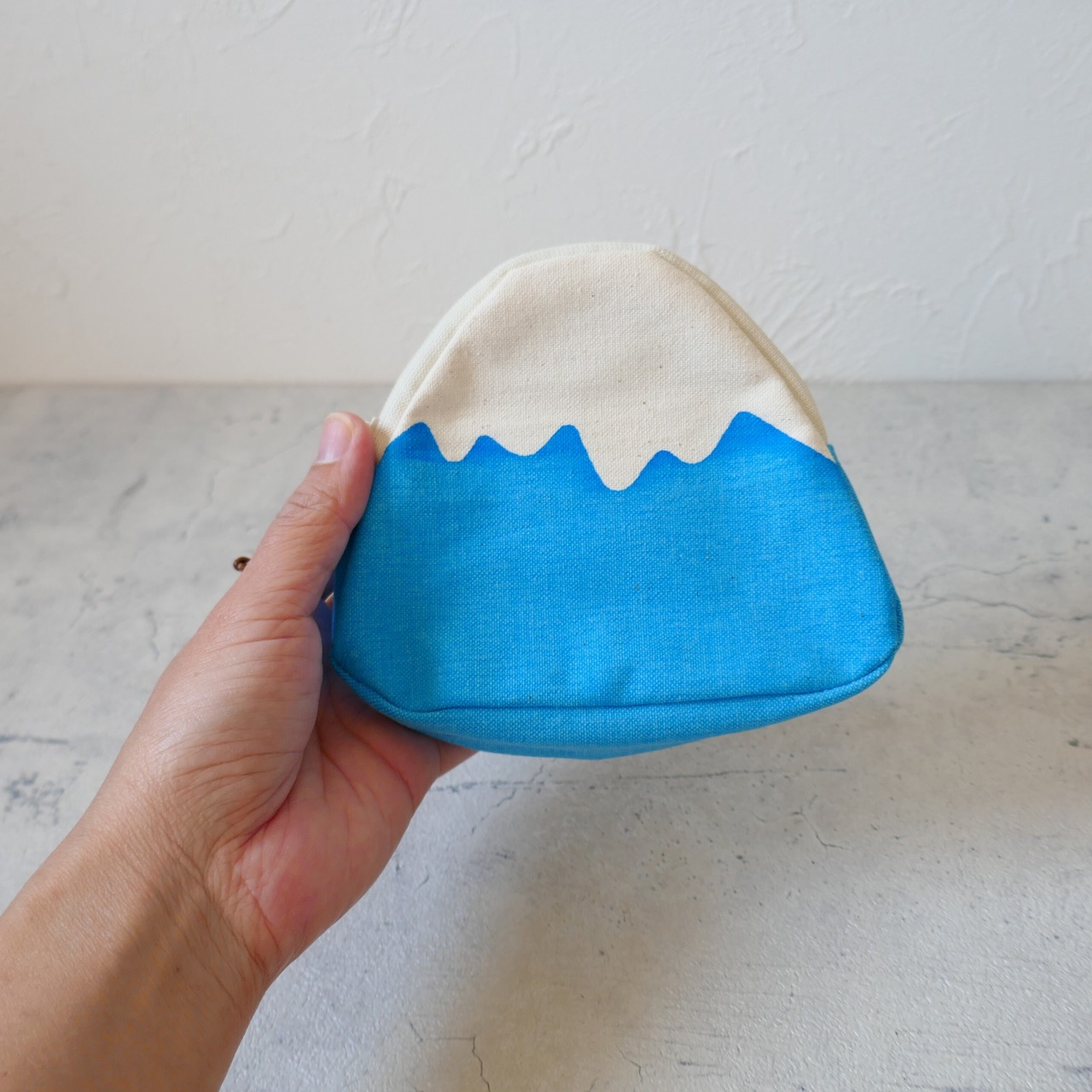 帆布をシルクスクリーンで染めた富士山型のポーチです。