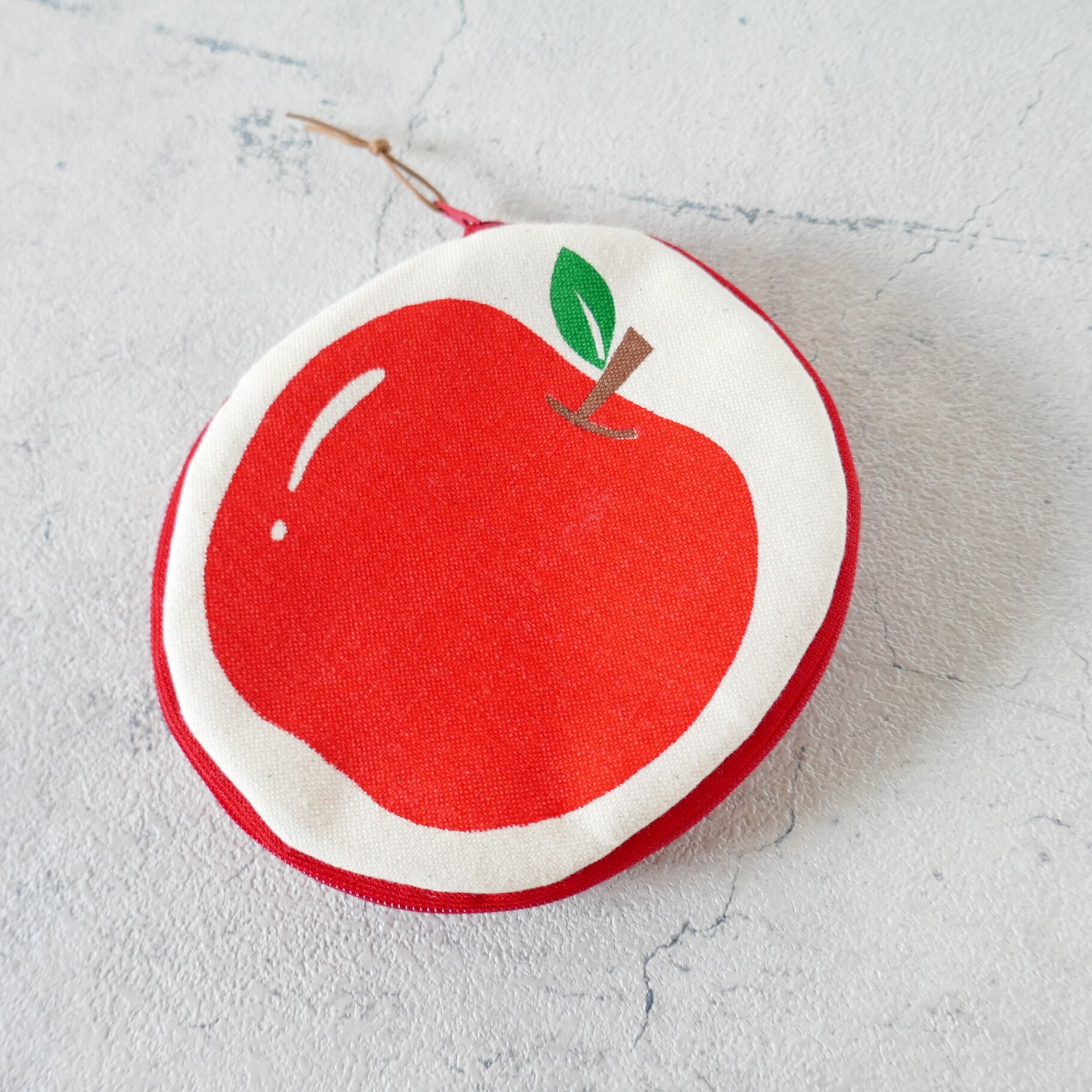 帆布をシルクスクリーンで染めたりんご柄のポーチです。