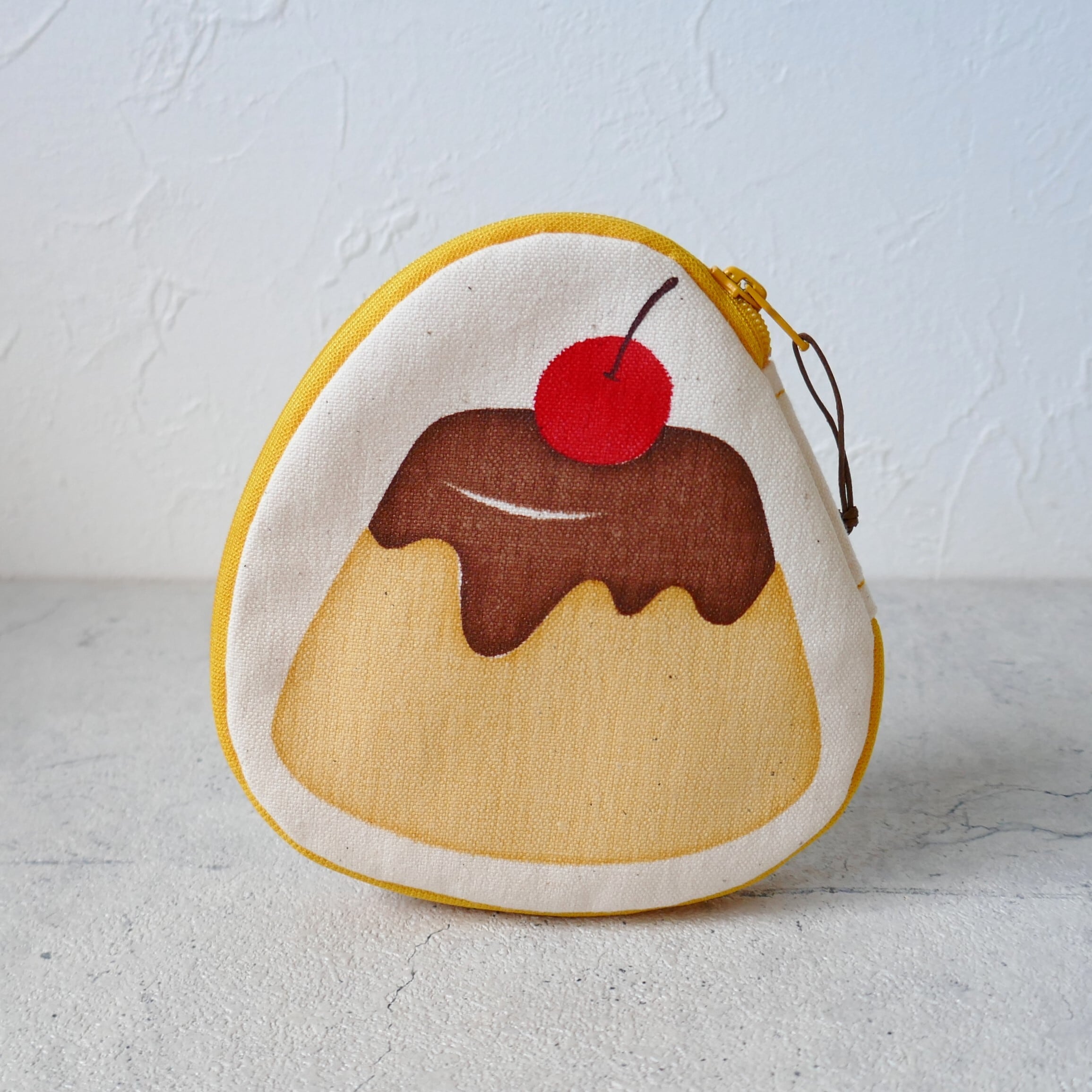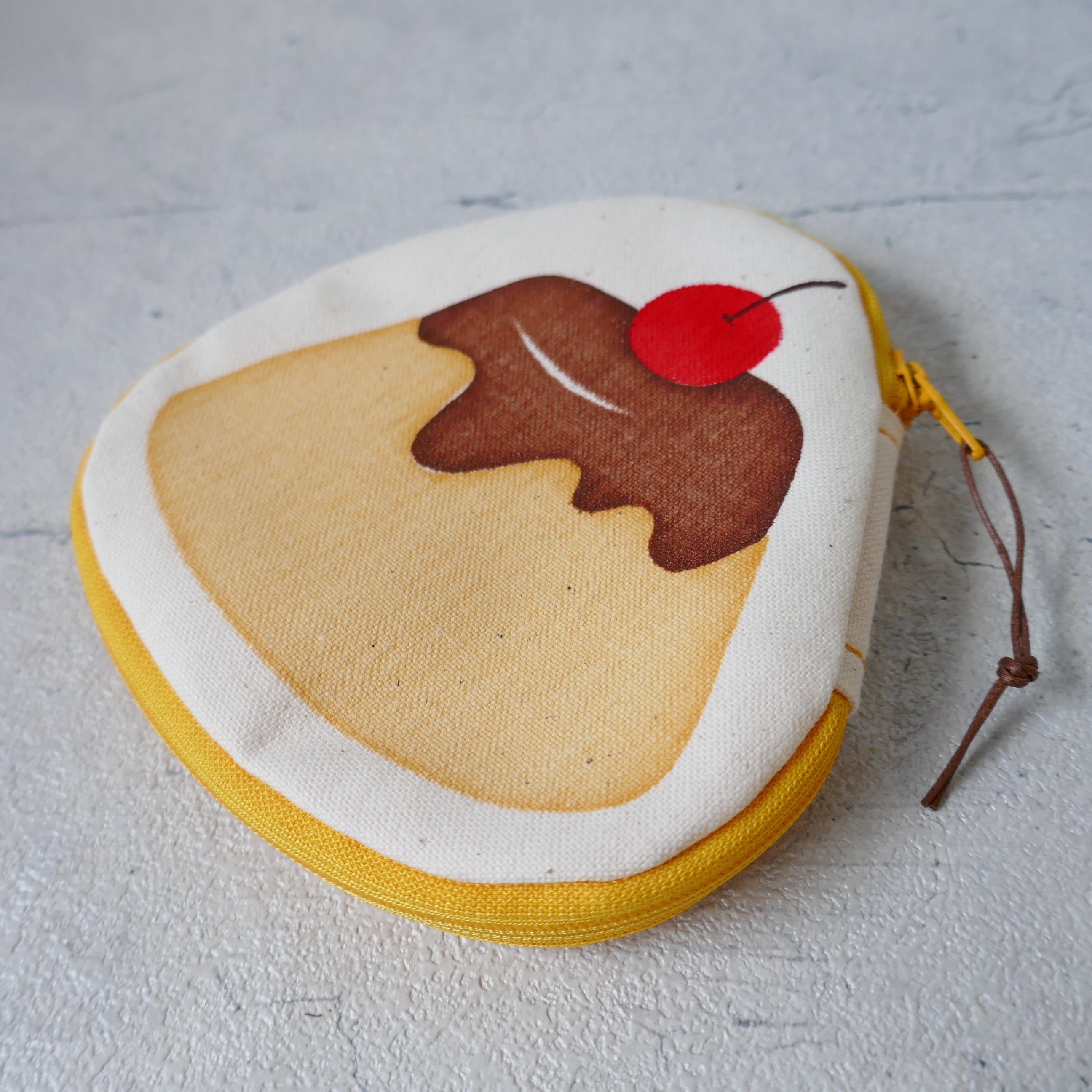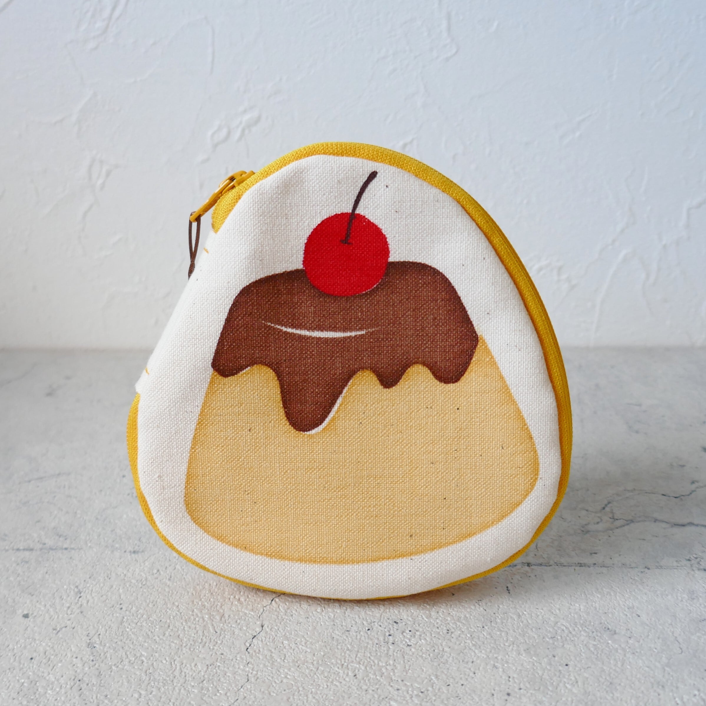 帆布をシルクスクリーンで染めたプリン柄のポーチです。