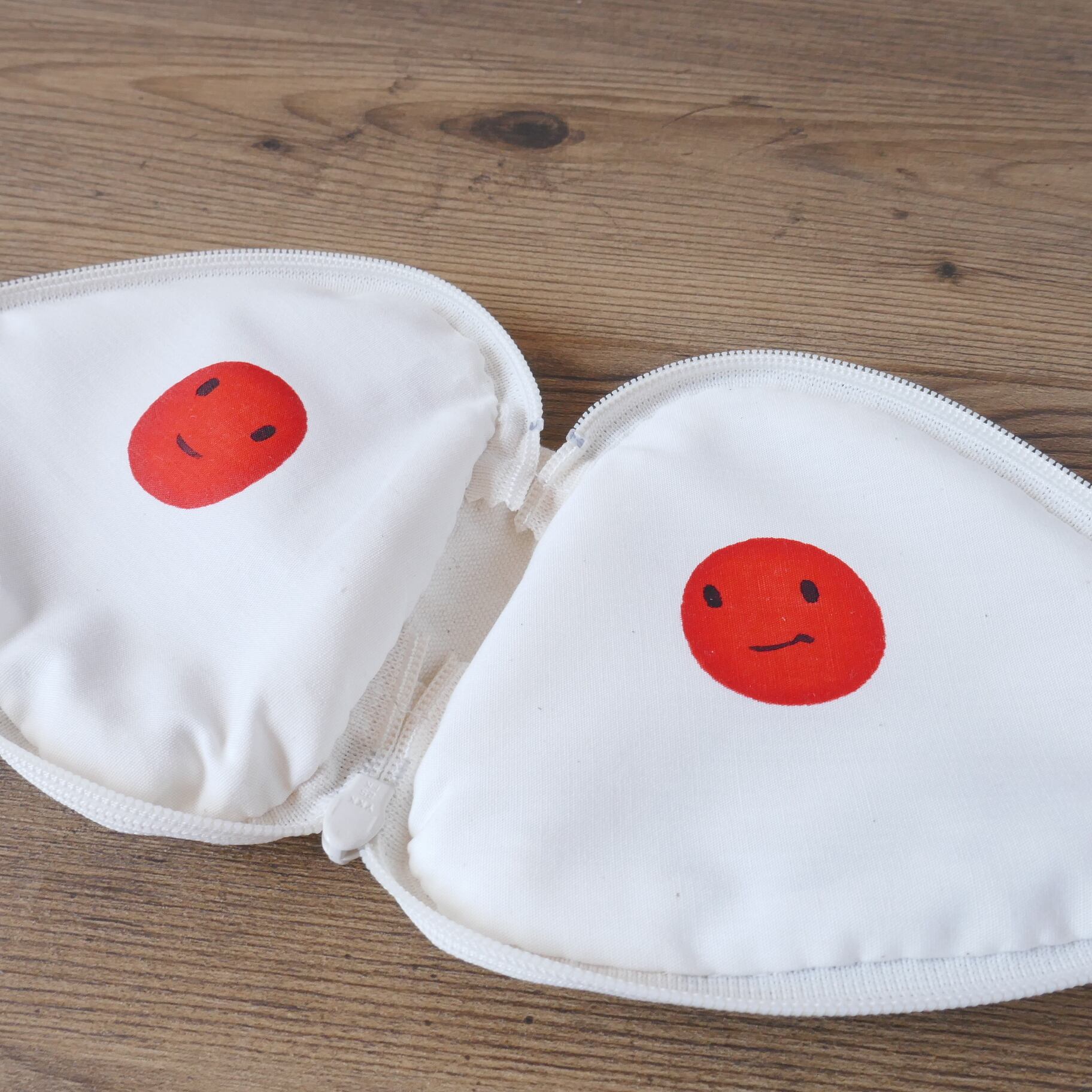 帆布をシルクスクリーンで染めたおにぎり型のポーチです。