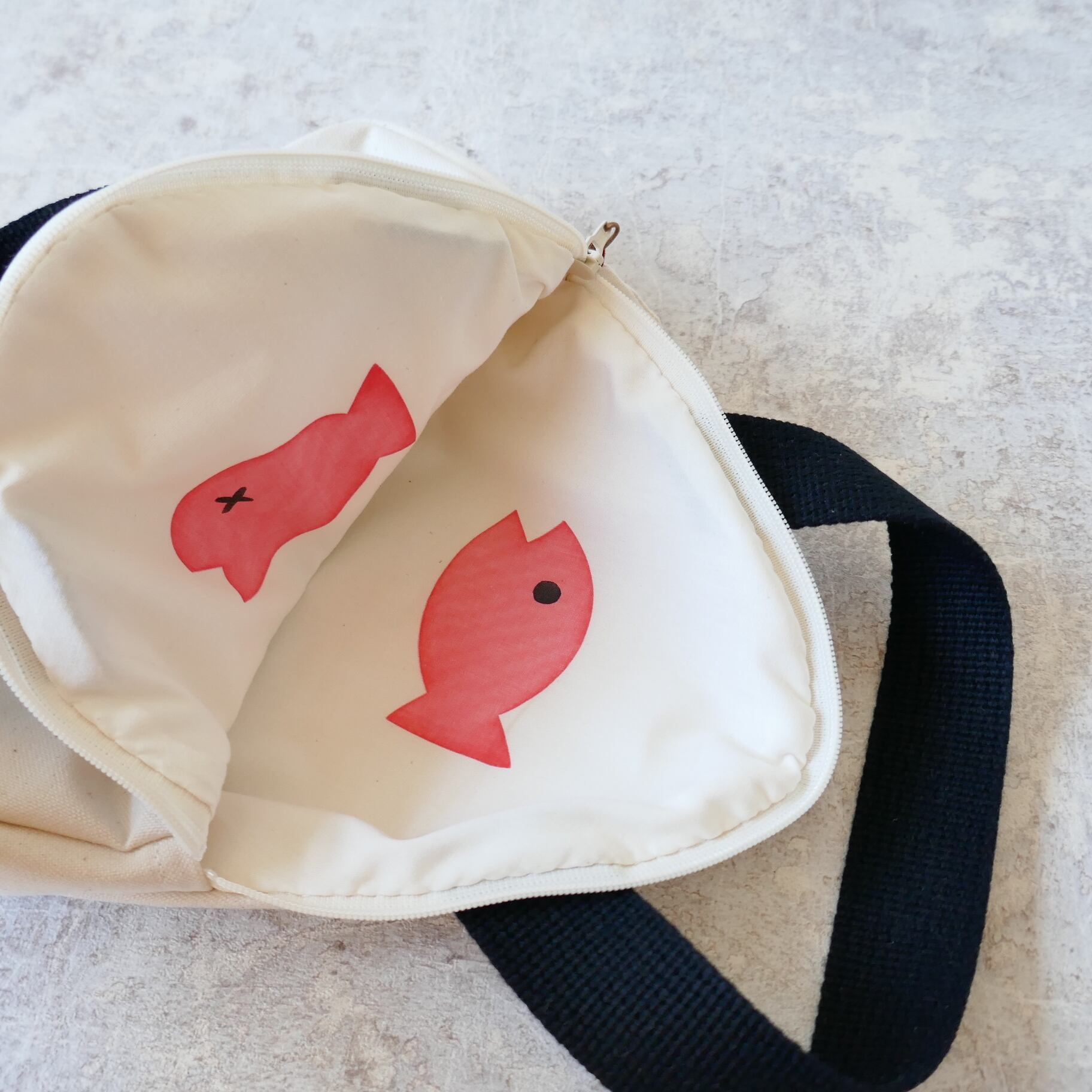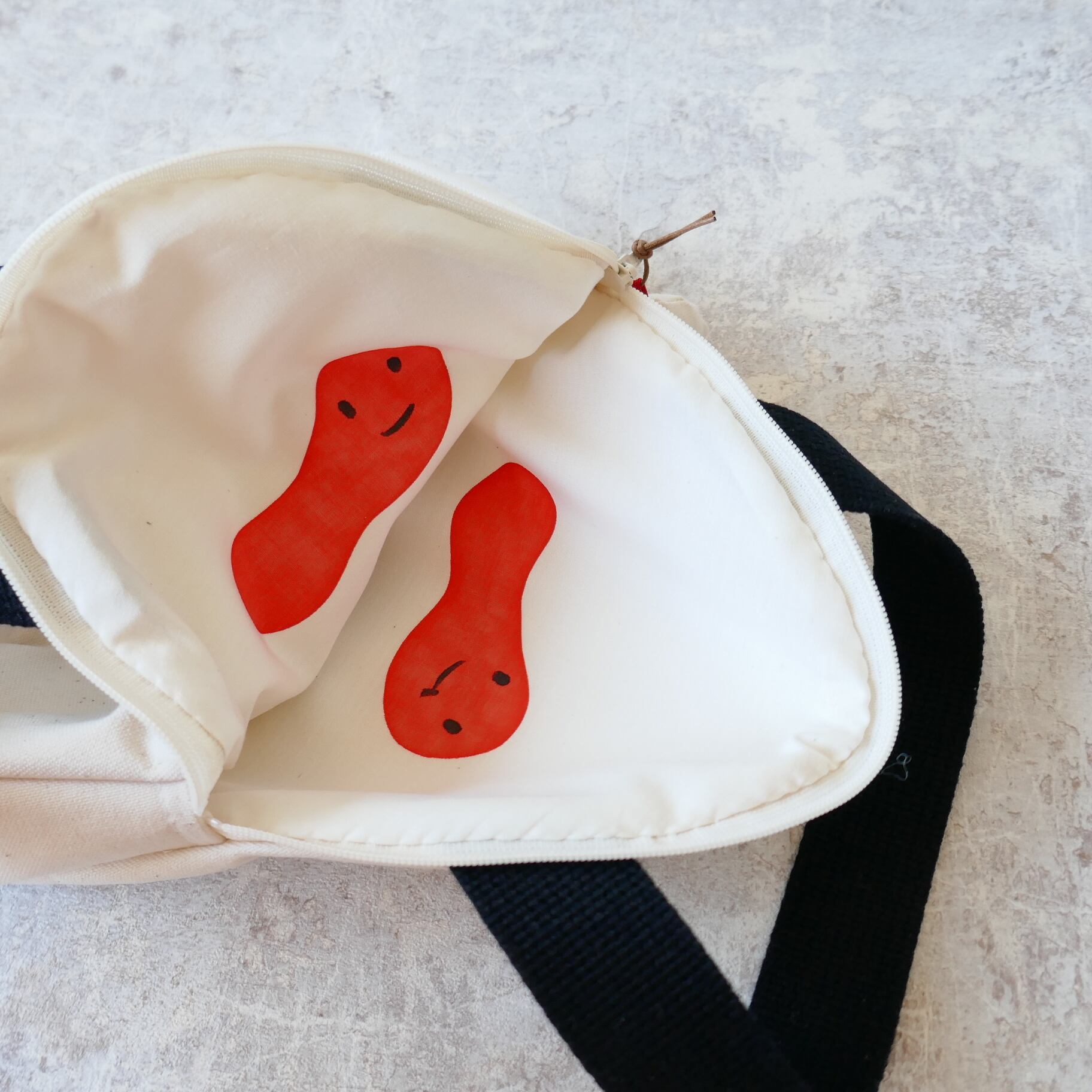 帆布をシルクスクリーンで染めたおにぎり型の小さめバッグです。