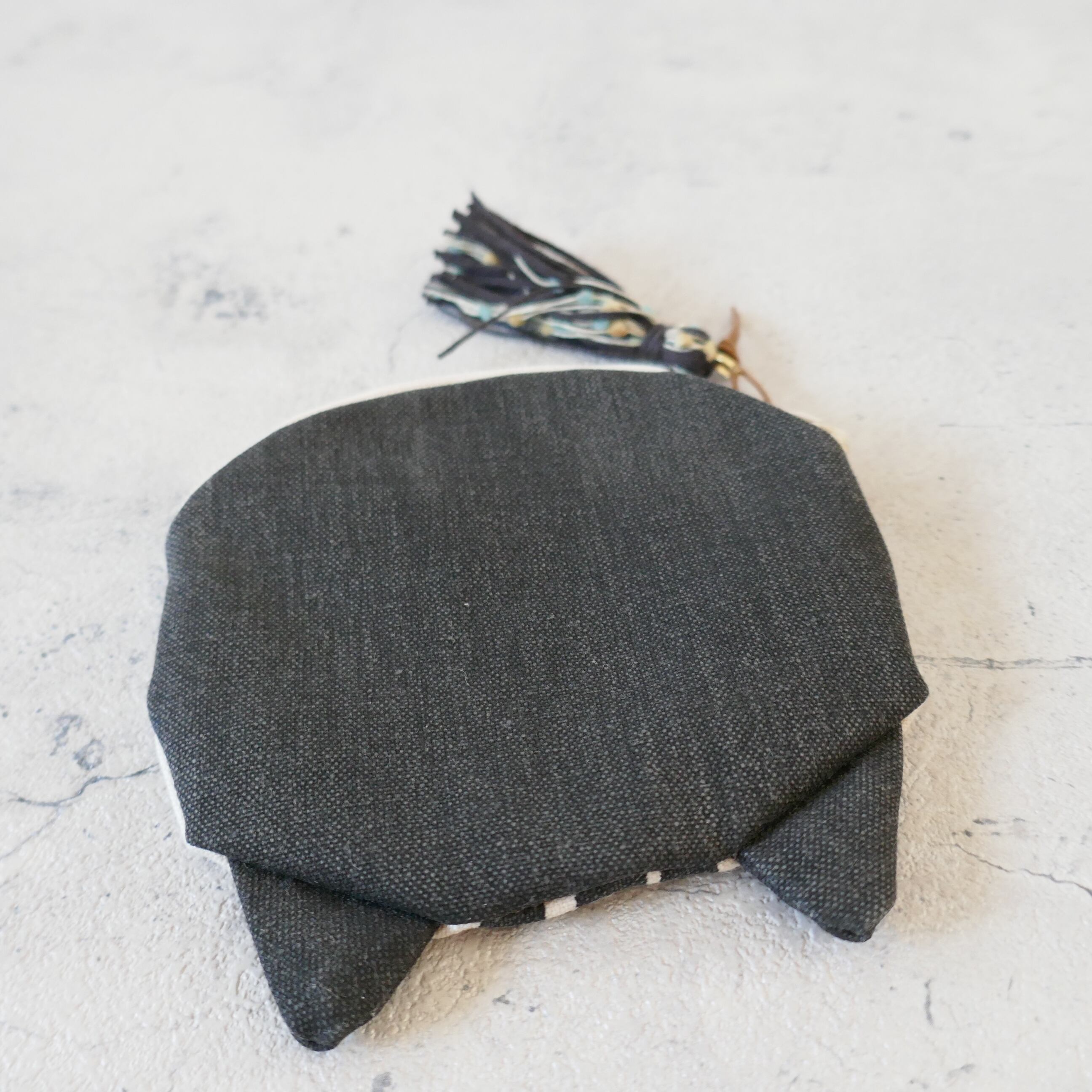 帆布をシルクスクリーンで染めたネコ型のポーチです。