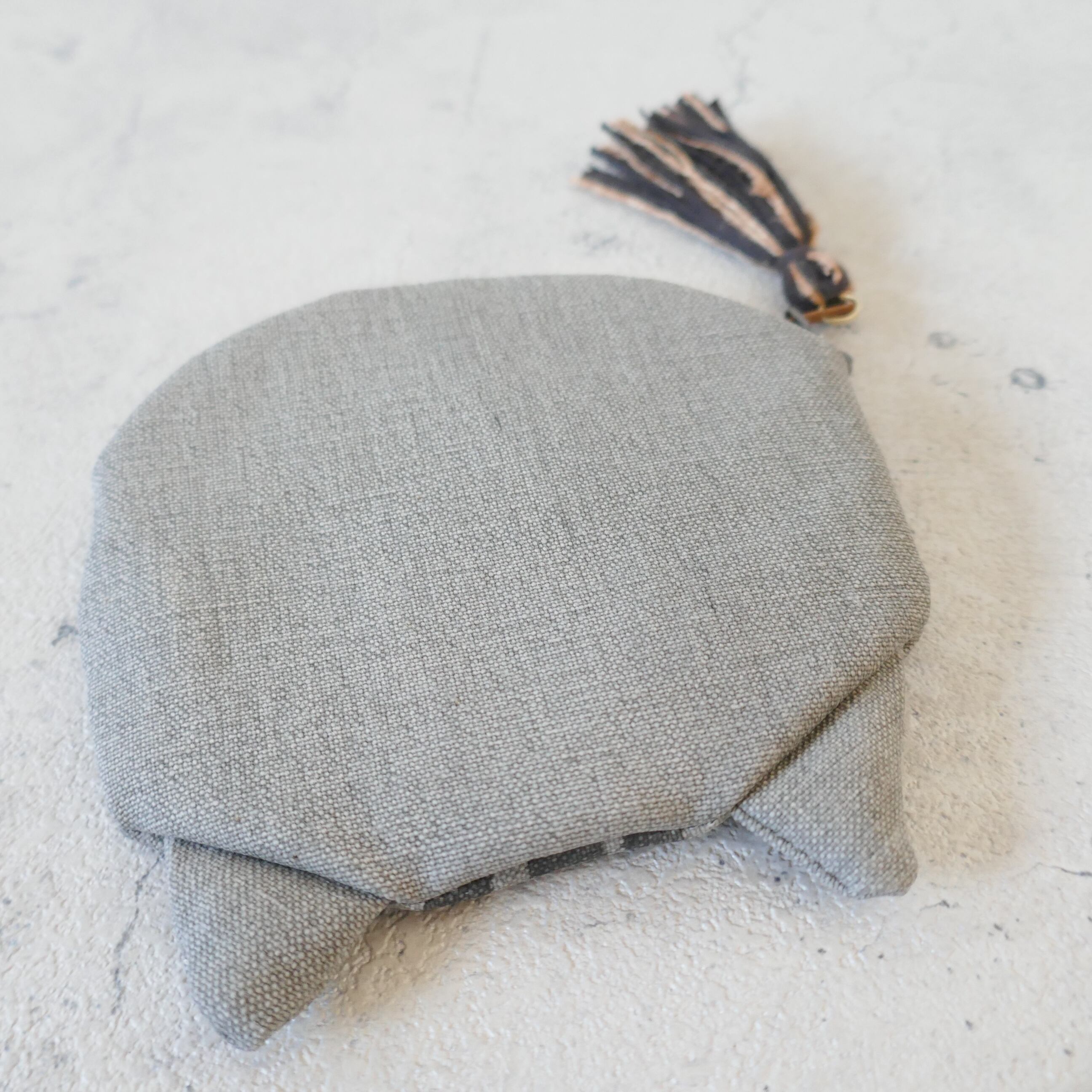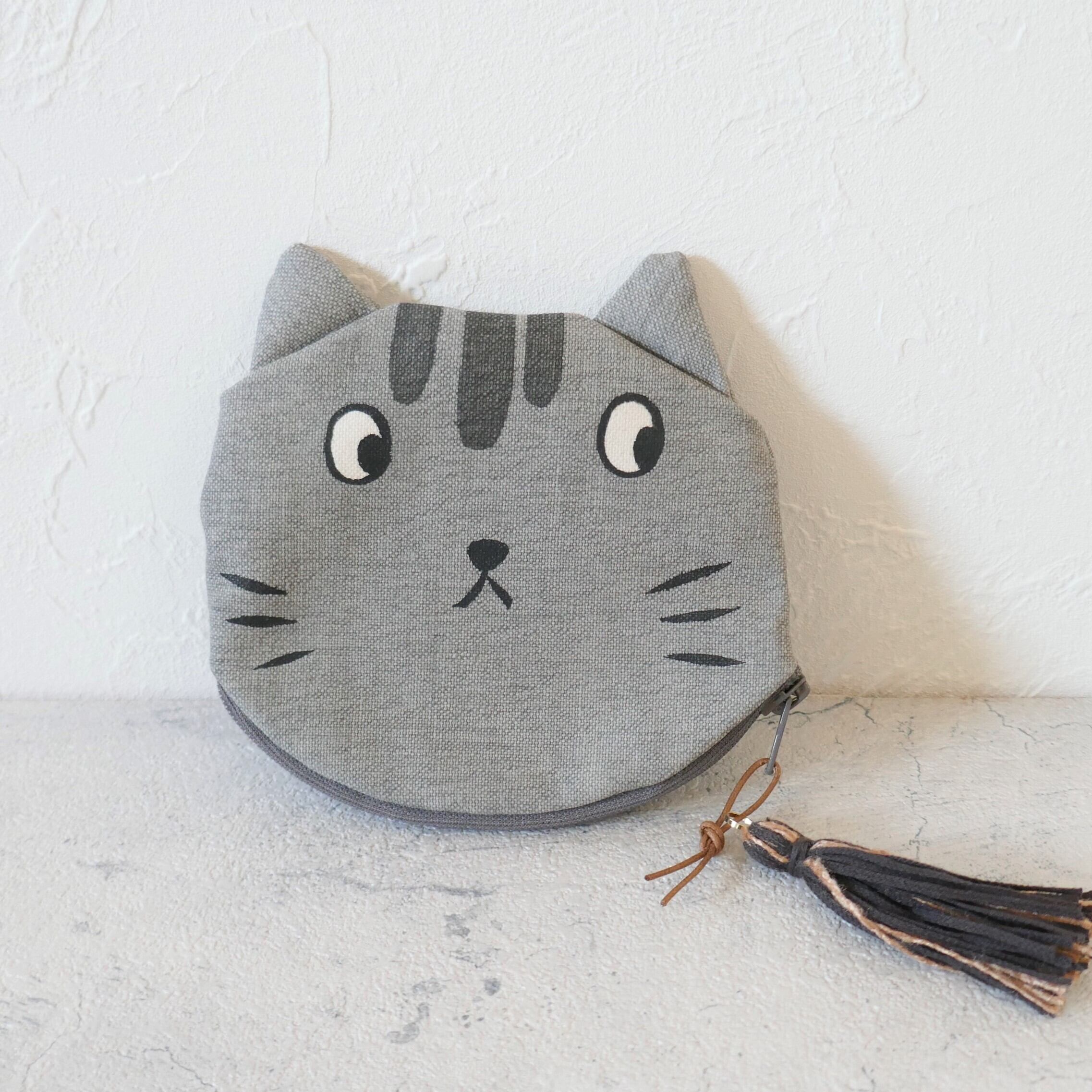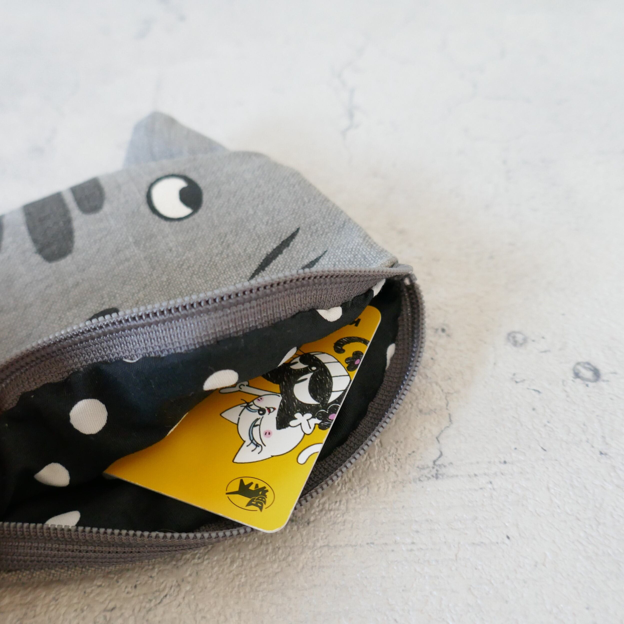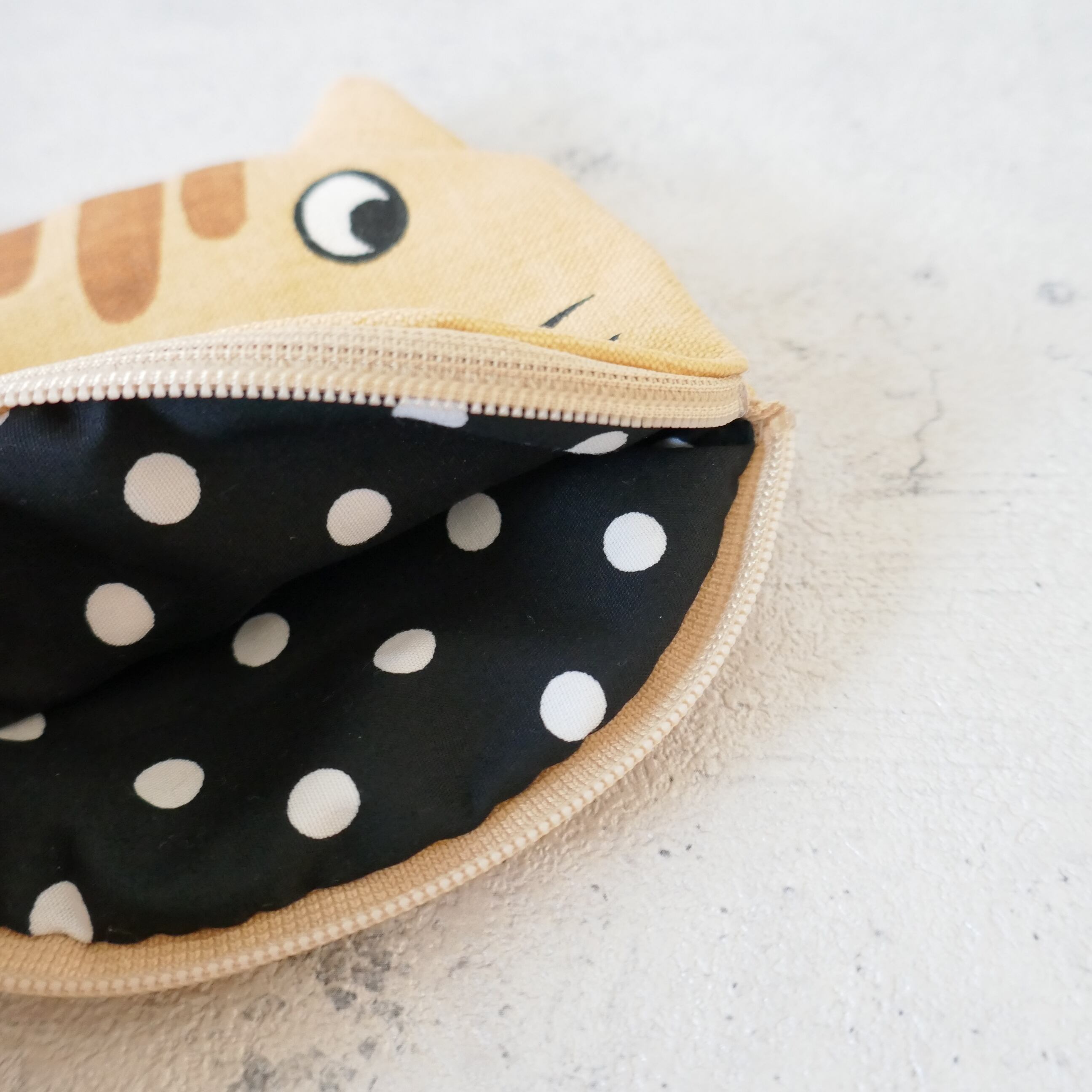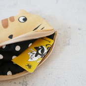 帆布をシルクスクリーンで染めたネコ型のポーチです。