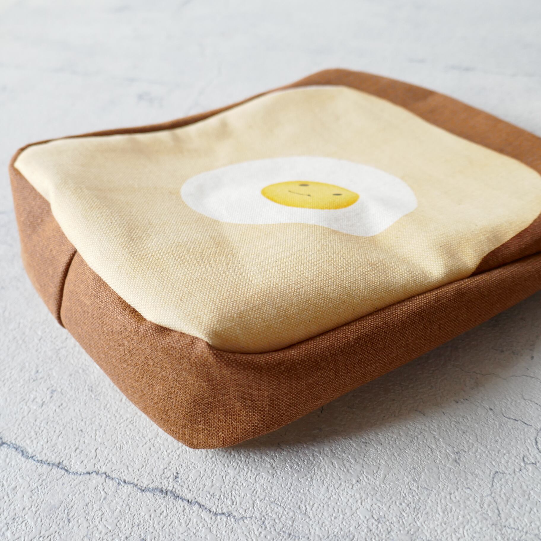 帆布をシルクスクリーンで染めたマチ付きの食パン型のポーチです。