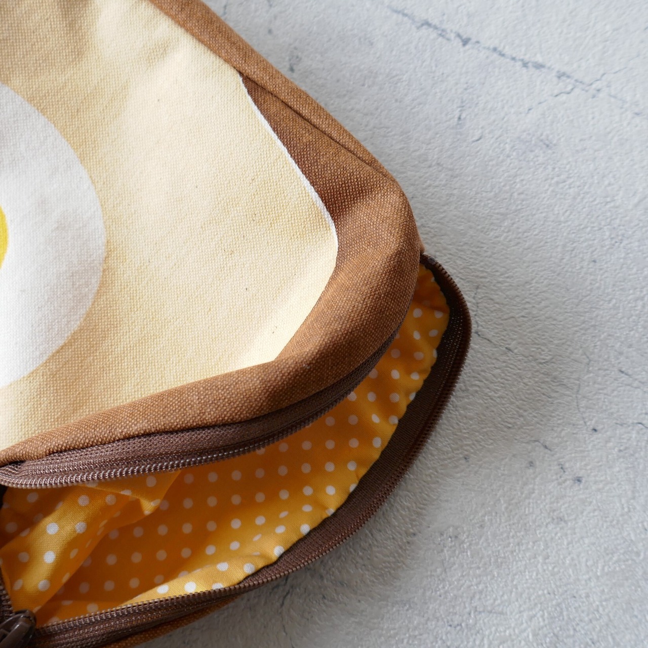 裏地は黄色の水玉模様。