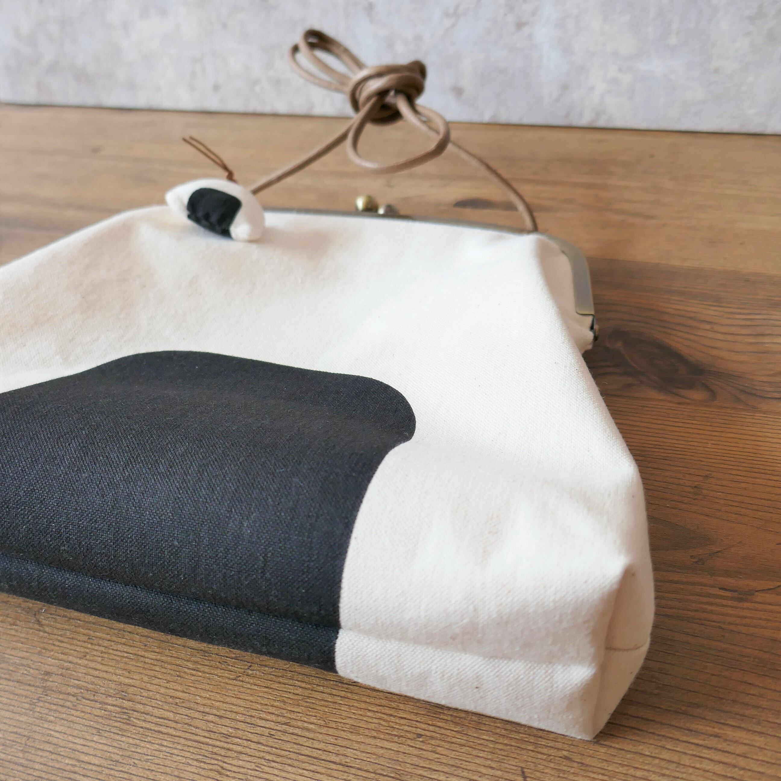 帆布をシルクスクリーンで染めたおにぎり型のポシェットです。