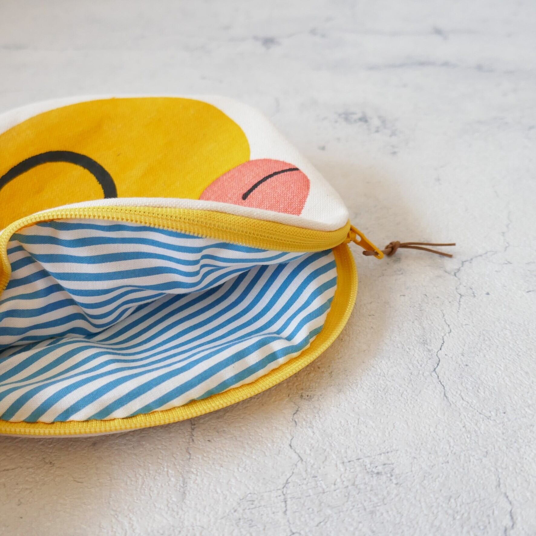 帆布をシルクスクリーンで染めたアヒル柄のポーチです。
