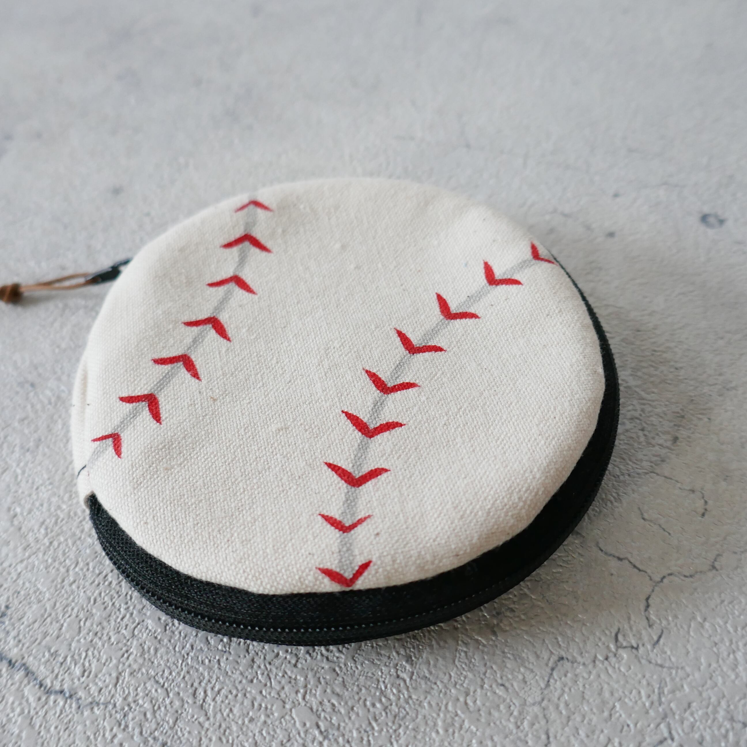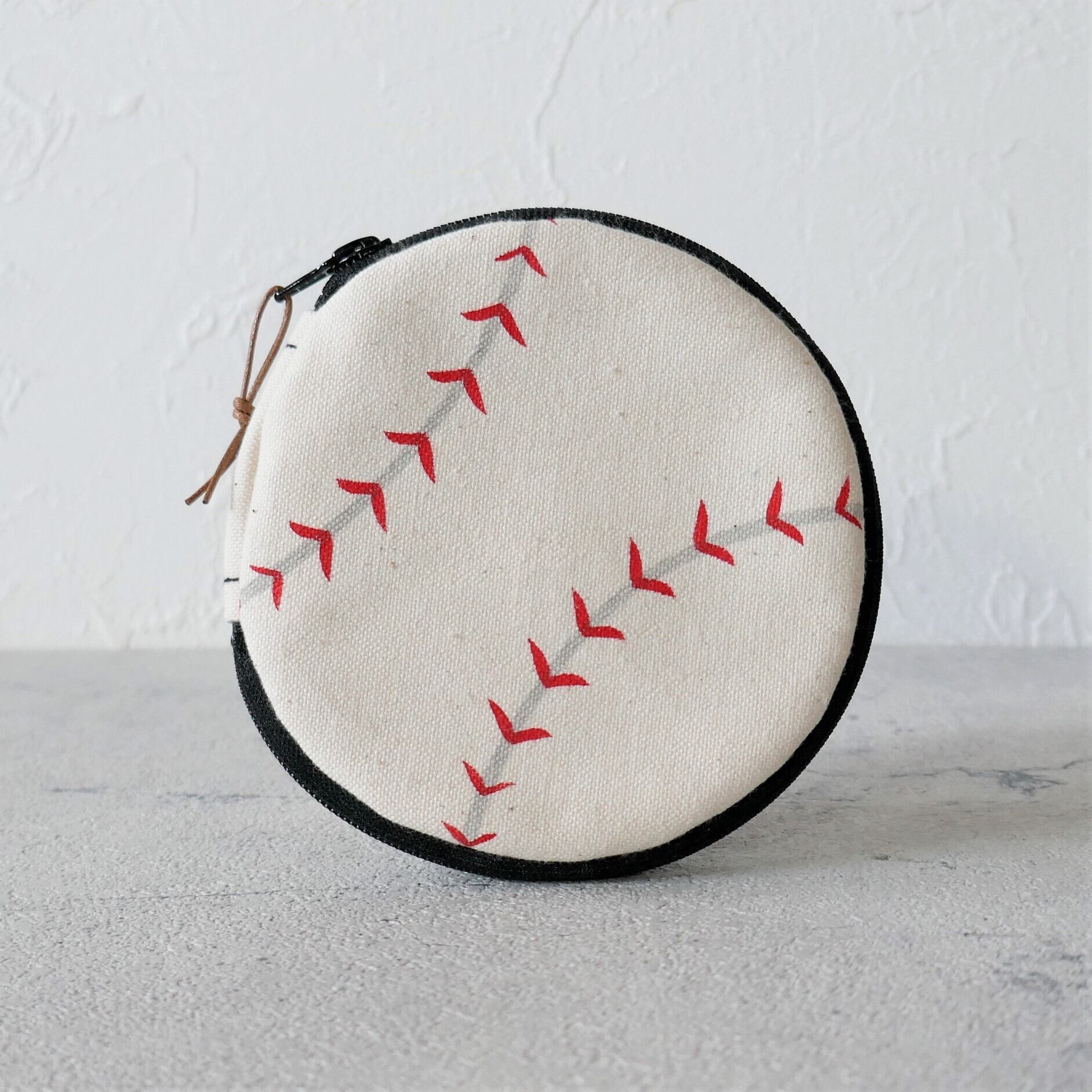 帆布をシルクスクリーンで染めた野球のボール柄のポーチです。