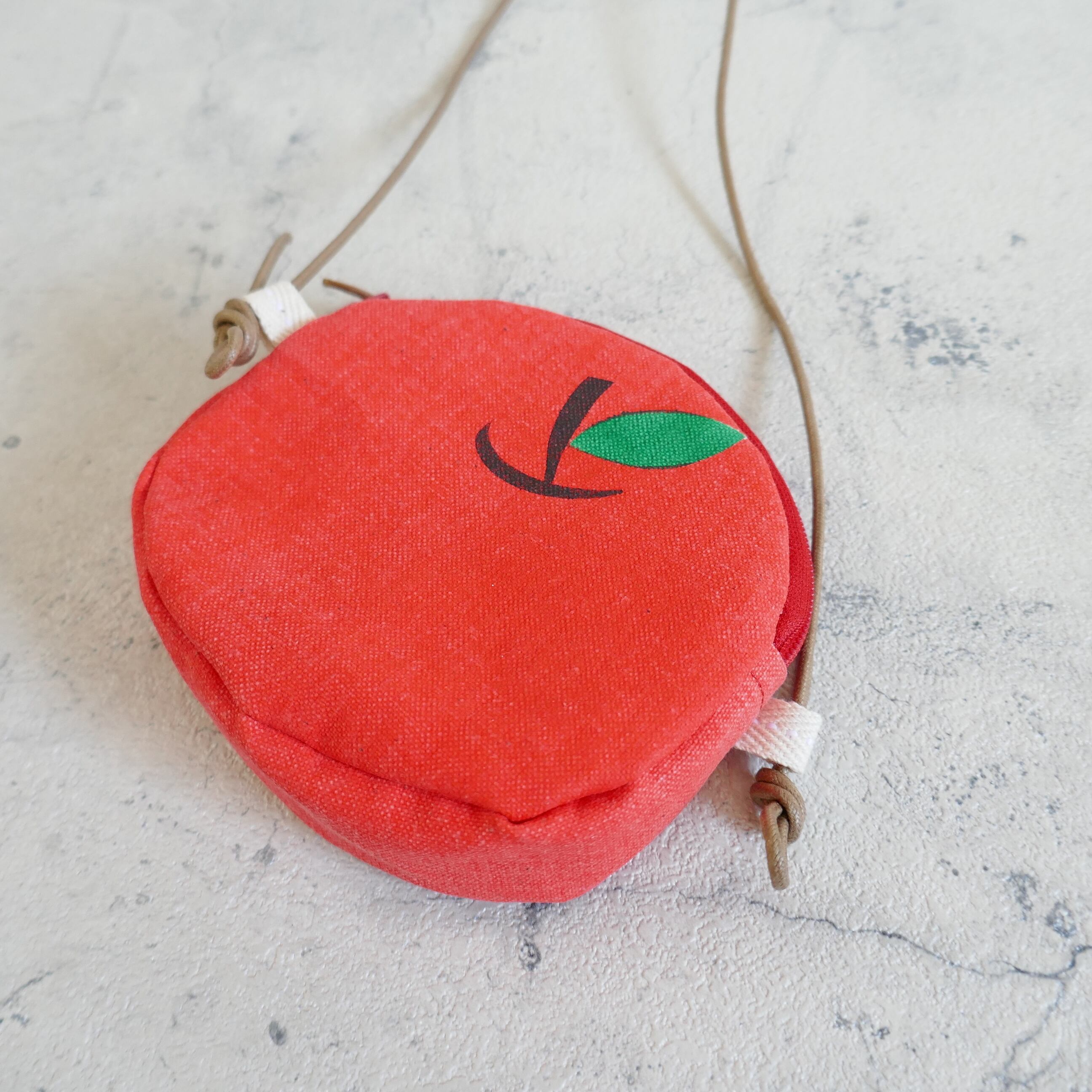 帆布をシルクスクリーンで染めた首かけタイプのりんごです。